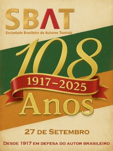 Parabéns à SBAT – Sociedade Brasileira de Autores Teatrais, que hoje celebra 108 anos de existência. Desde 1917, a SBAT